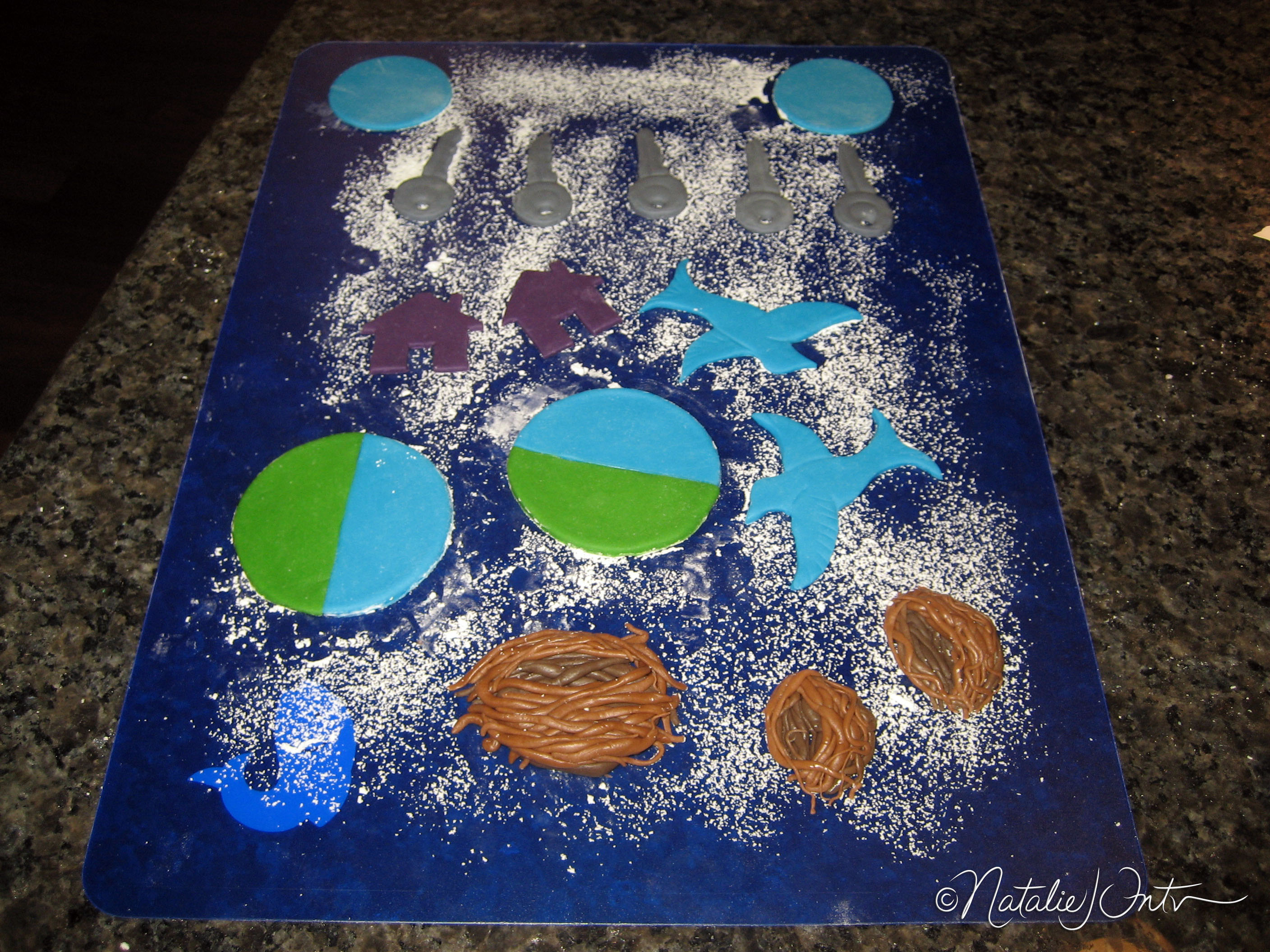 For decorating this cake and cupcakes, I used a combination of fondant, buttercream icing, and colored sugar. It gave me some more practice making little fondant details for the cupcakes!