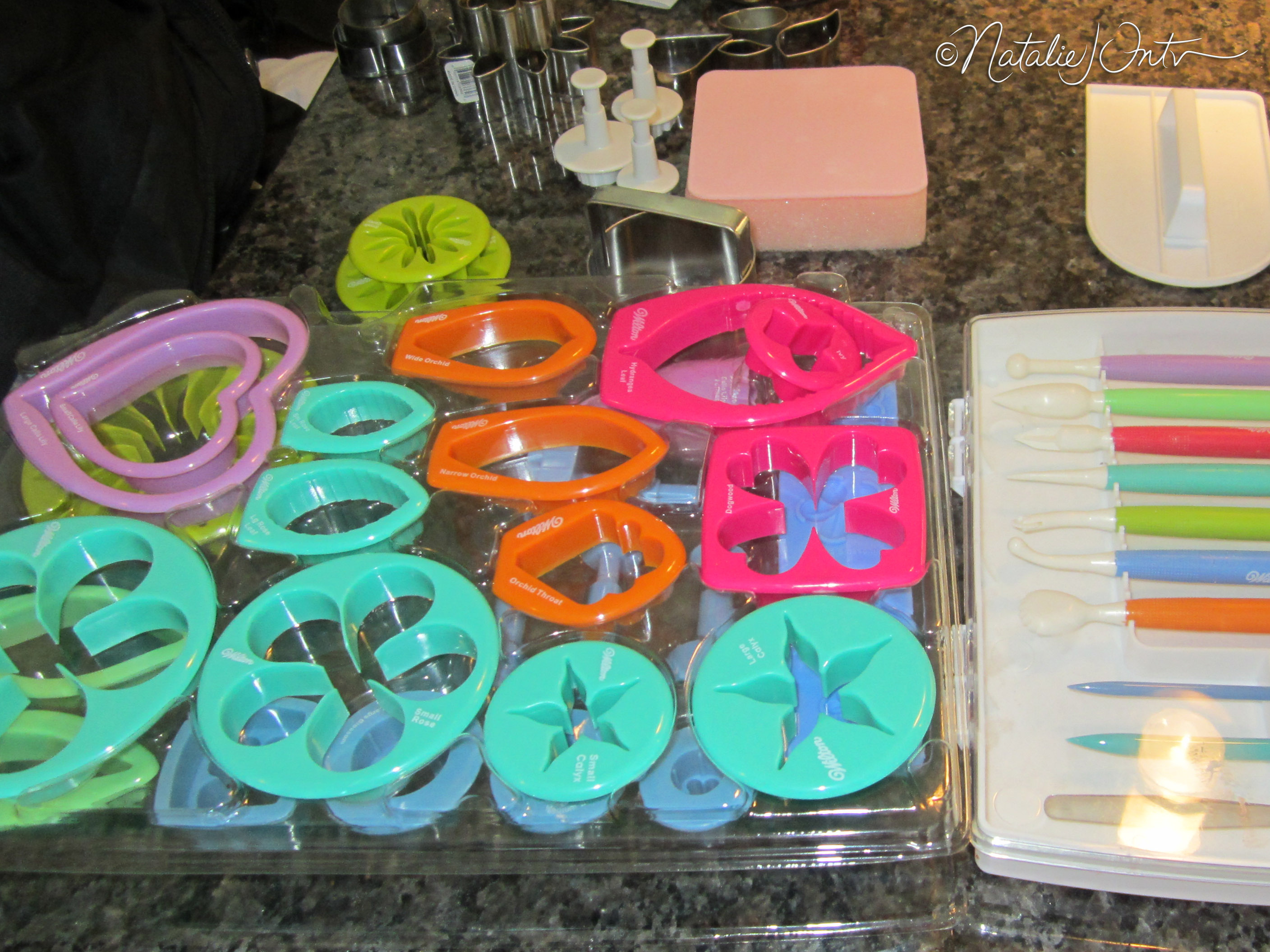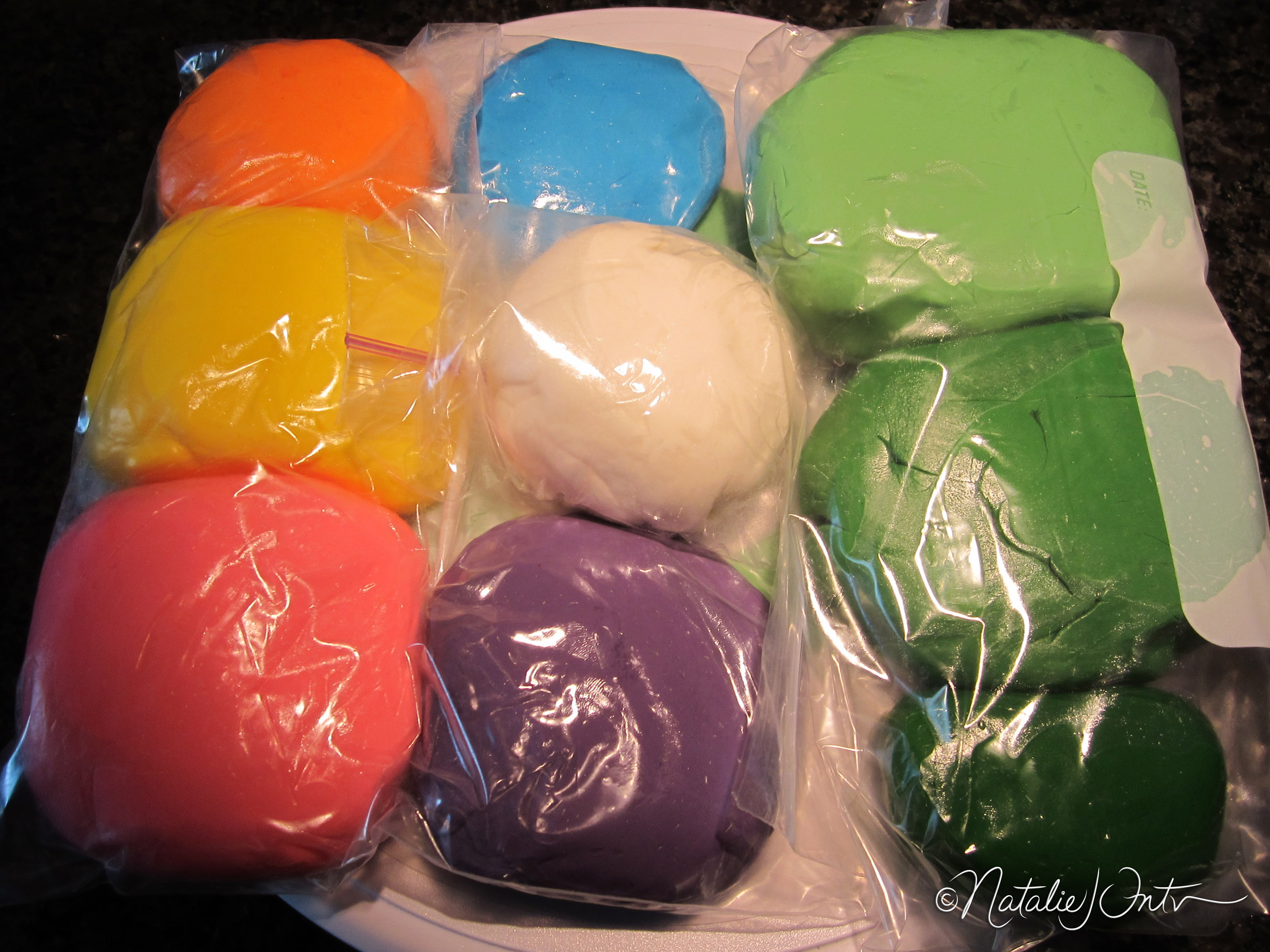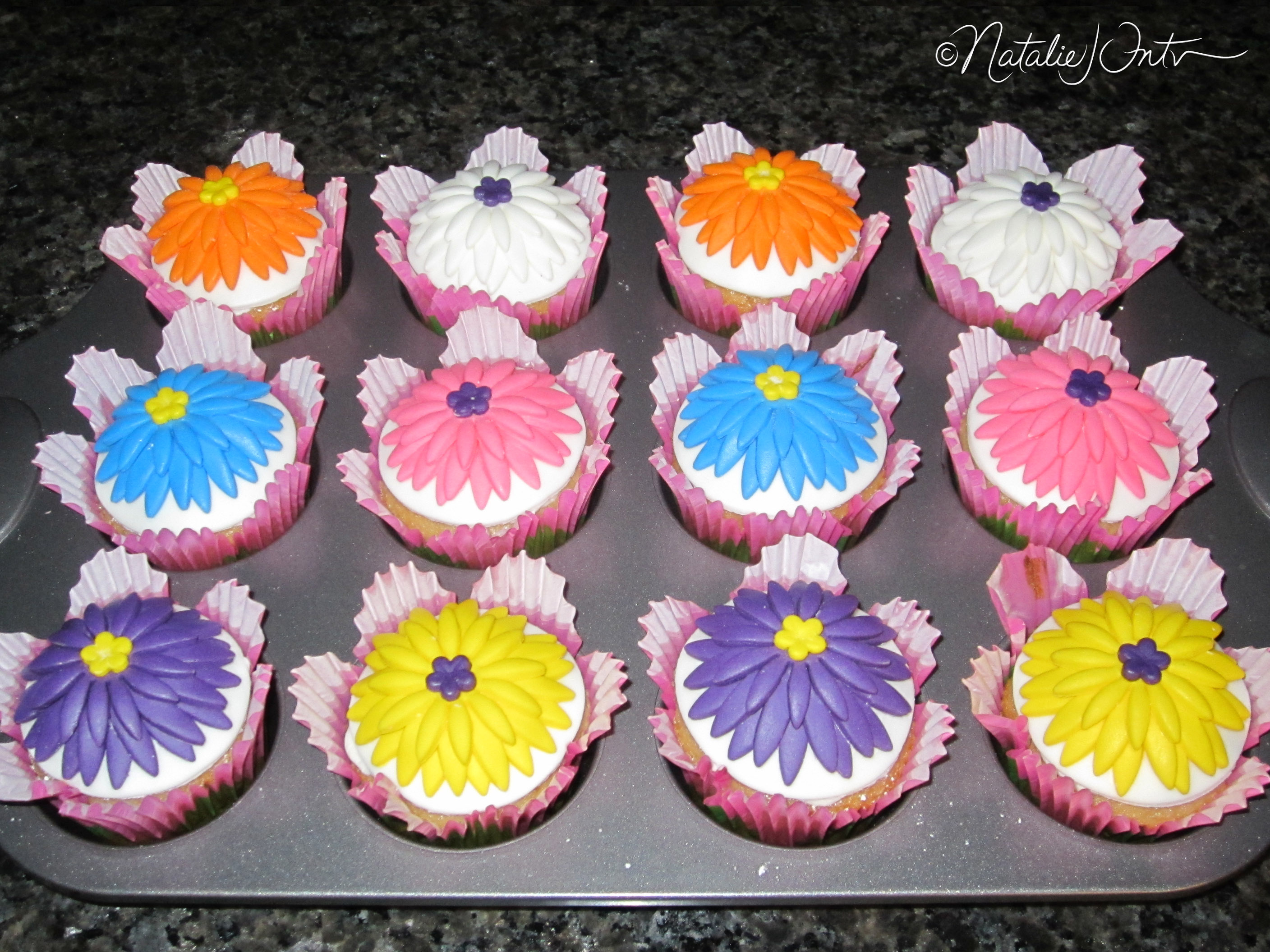 Sweet springtime flowers to celebrate new life! This was a cupcake bouquet for my cousin’s baby shower celebration, inspired by her love for life, nature, and colour! I baked the cupcakes in paper flower petal wrappers, and decorated them with fondant flowers made using Wilton’s Gum Paste Flower Cutter Set. I wanted to have the flower cupcakes ‘growing’ out of a base of green grass. The weight of the cupcakes would be too great for the cake alone to support, so I filled a plastic cup with leftover fondant, and set it inside the cake base before I covered it with green fondant and added layers of green grass around the base. I cut BBQ skewers at different lengths for the flower stems, speared them through the cupcakes, and then stuck them into the fondant inside the green base cake to create the bouquet.