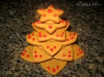 These 3D stacked cookie trees are fun and easy to make, and could be decorated in many different ways, but would also look great even without decoration! I used a gingerbread recipe for these ones, but they also work well with sugar cookies. I used cookie cutters from the Wilton Christmas Cookie Tree Kit, but you could use any series of concentric star or even snowflake or round cookie cutters. I only used about half the cookie set on these small trees, but made my trees taller by adding circular cookies between each layer of star cookie. I used a little bit of cookie icing to stick each layer together, making sure to let them dry overnight before packaging or moving them.